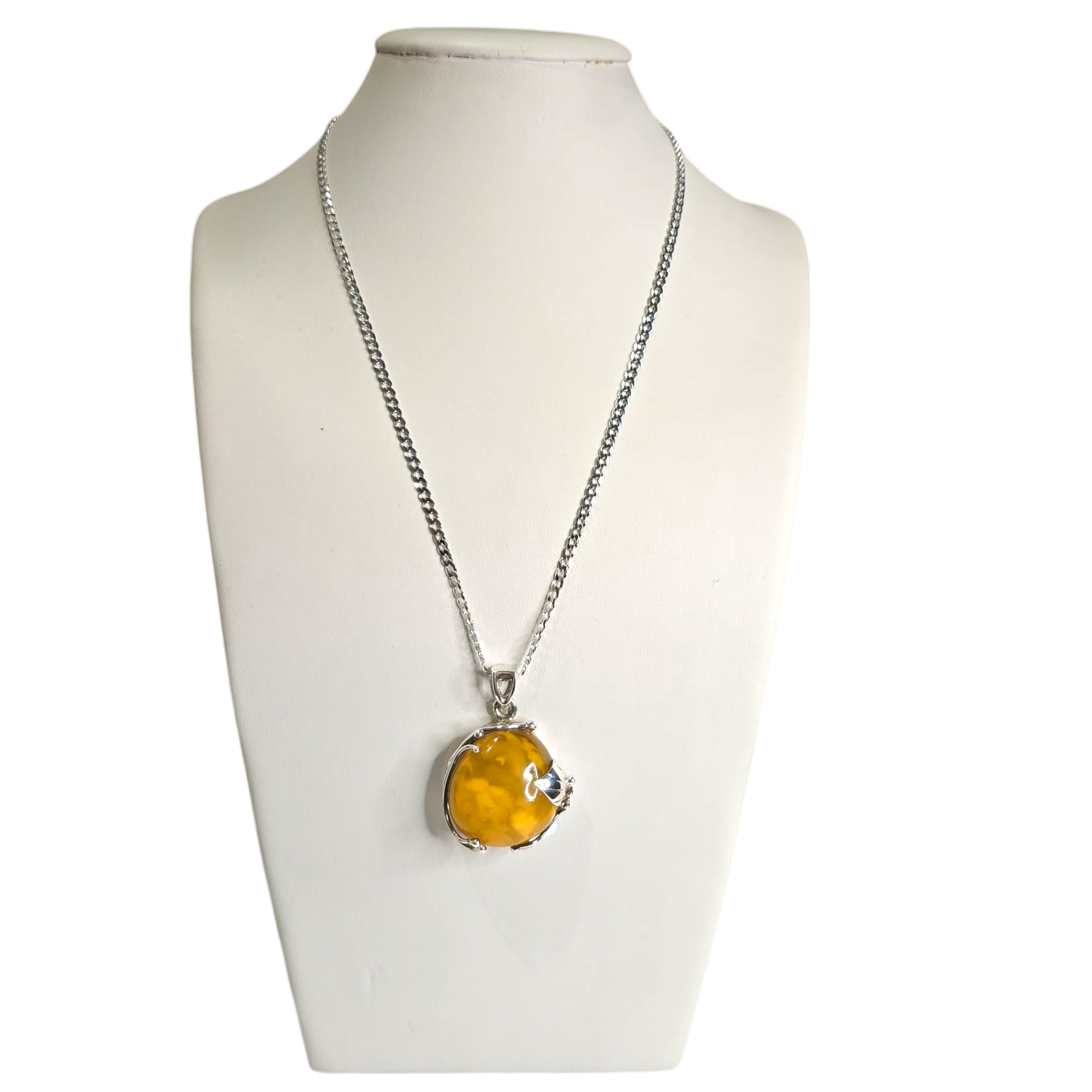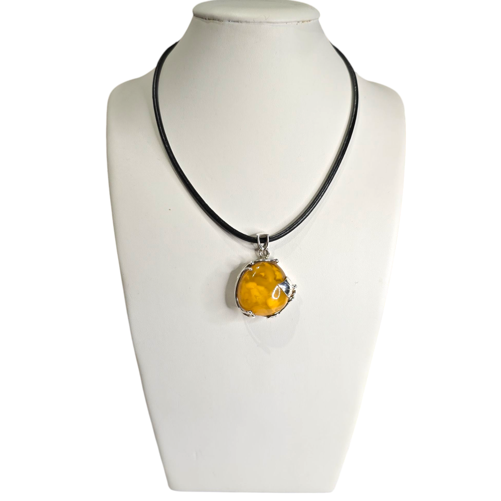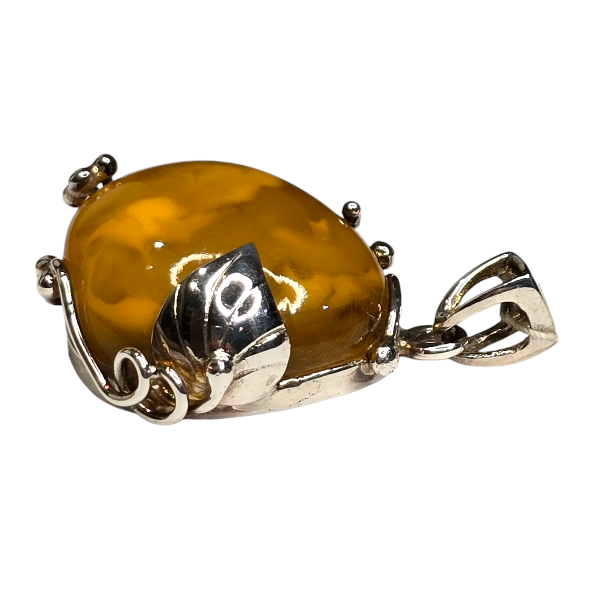 Ręcznie wykonana zawieszka z bursztynu i srebra.